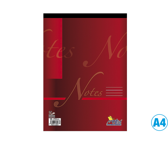 Poznámkový trhací blok z bezdřevého papíru, šitý na kratší straně, podlepený šedou lepenkou. Formát: A4 Počet listů: 50 Vzor: linkovaný 8mm Gramáž: 60g