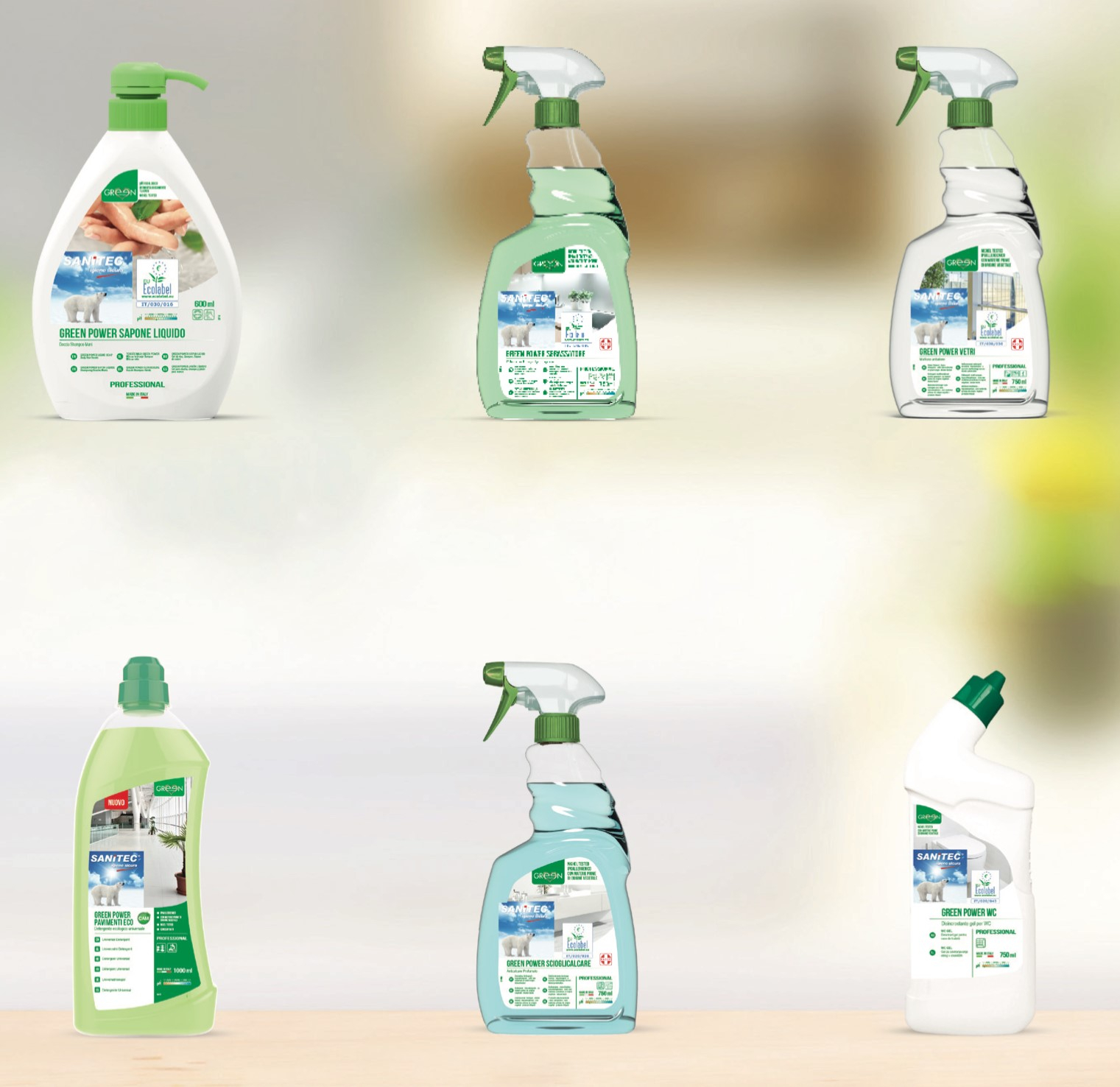 GREEN POWER Okna, skla a chrom, 750 ml pro čištění skla, krystalů, zrcadel a chromovaných částí. Dává povrchům lesklý a voňavý povrch bez zanechání šmouh. Jeho složení, založené na použití přírodně získaných povrchově aktivních látek, bylo navrženo pro zajištění vysokého výkonu.