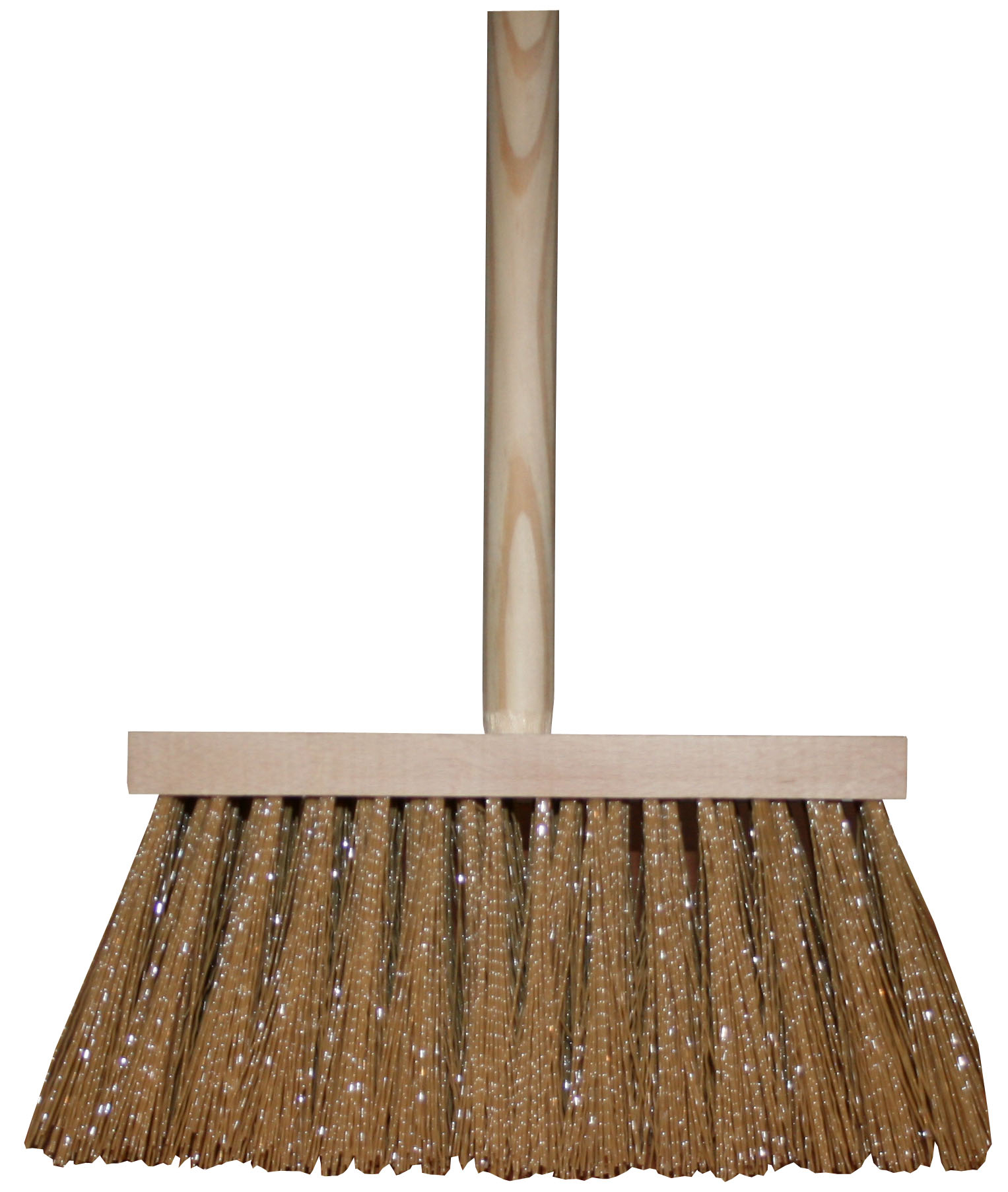 Koště dřevěné s tyčí, délka 130 cm, šíře 32 cm, délka chlupu 12 cm, slouží k zametání nečistot z ploch silnic a chodníků.