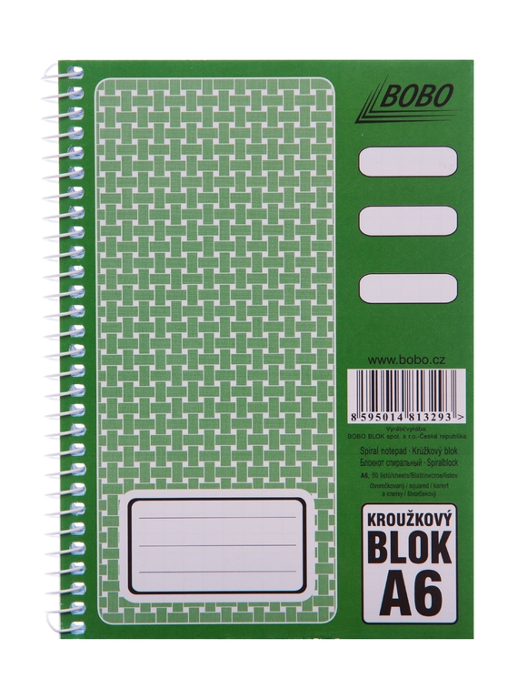 Boční vinutá kovová spirála je základní druh knihařské vazby. Využívá se především u stolních kalendářů, ale také u manuálů, bloků a publikací. Spirála je na konci zahnutá, čímž je zajištěna proti vytočení. Umožňuje plošné rozevření publikace, aniž by se listy samovolně otáčely. Samozřejmostí je snadné odtržení listu. Čtverečkované listy z bezdřevého papíru. Do školy i kanceláře.
