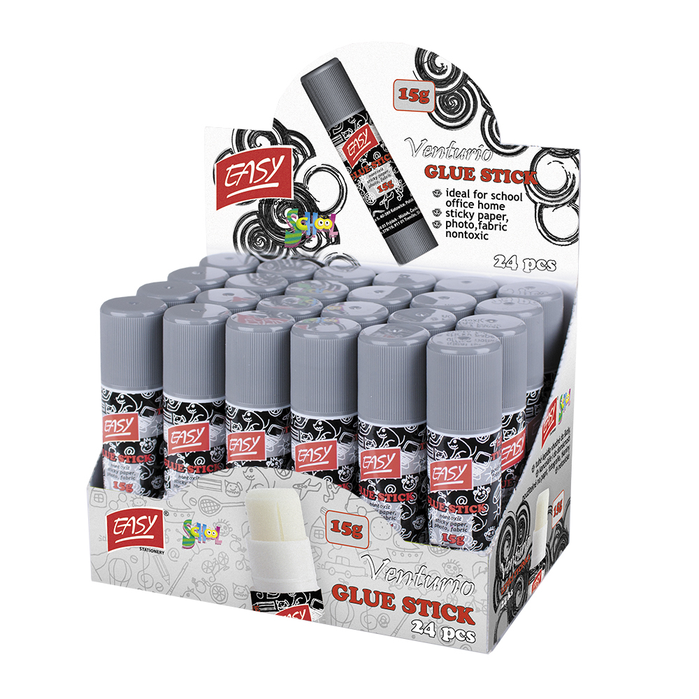 Lepící tyčinka Venturio 15g V balení 24ks na displeji Materiál: PVA Originál balení: 16 x 24 ks EAN samostatného výrobku: 5901180317535