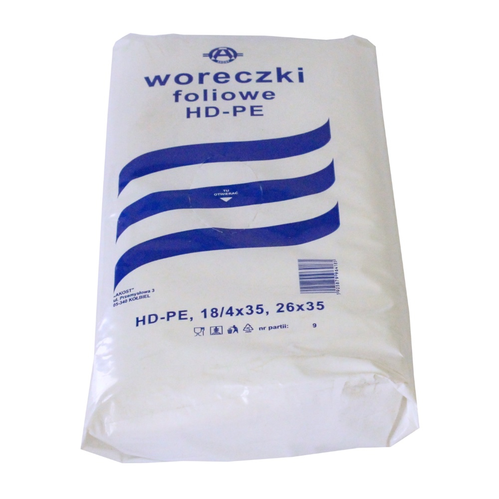Mikrotenové sáčky 18+4 x 35 cm, 26 x 35. 1000 kusů sáčků v balení, krabice obsahuje 10 balení.