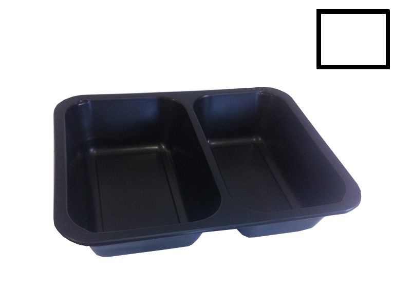 Misky vhodné na zatavení folií. Objem komor: 590 a 500 ml. Krabice obsahuje 360 misek. Prodej po krabicích.