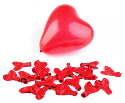 Nafukovací balónky Srdce "L" červené, po 100 ks v balení. Cena je uvedená za balení. Celá krabice obsahuje 40 balení.