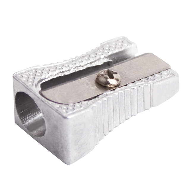 Praktické celokovové ořezávátko duralové, jednoděrové, ostré, určené pro klasické i Jumbo dřevěné pastelky a tužky.
