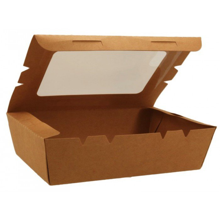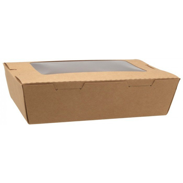 Papírová krabička kraft s okénkem 1000 ml, 200 x 140 x 50 mm, 50 ks v balení. Celá krabice obsahuje 4 balení. Vhodná na všechny druhy jídel. Teplotní rozsah od -40 stupňů Celsia do +90 stupňů Celsia.