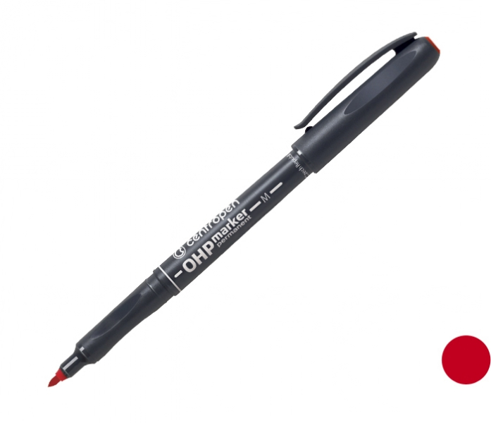 Speciální permanentní popisovač s ergo držením, určený pro psaní na neporézní povrchy jako jsou fólie pro zpětné projektory, film, kov, plast, pryž, sklo, porcelán. Permanentní inkoust na alkoholové bázi, otěruvzdorný, vodou nesmývatelný. Písmo lze odstranit lihem, ventilační chránítko. Po použití uzavřít. Barva: červená Šíře stopy: 1mm Jemný hrot