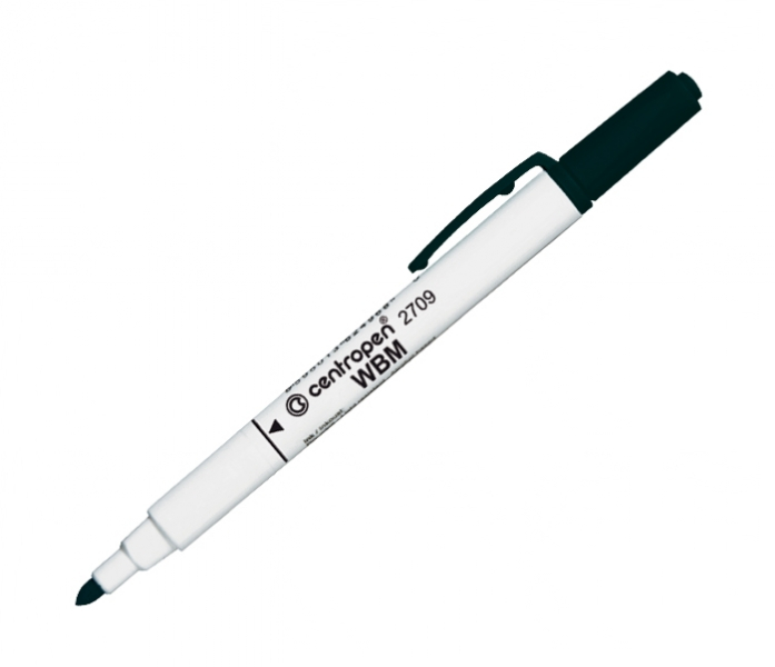 Značkovač na bílé stíratelné tabule s ergo úchopovým držením. Vhodný je i na film, fólie, kov, plast, pryž, sklo, porcelán. Za sucha stíratelný, permanentní, světlostálý inkoust na alkoholové bázi, zdravotně nezávadný, bez zápachu. Skladovat ve vodorovné poloze, případně hrotem dolů, ventilační chránítko, po použití uzavřít. Barva: černá Šíře stopy: 1,8mm Válcový hrot