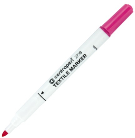 Speciální značkovač na většinu druhů textilu, ergonomicky tvarovaná úchopová zóna. Pigmentový inkoust na vodní bázi, světlostálý, nevypratelný, prát do 60°C. Skladovat ve vodorovné poloze, ventilační chránítko, po použití uzavřít. Barva: růžová Šíře stopy: 1,8mm Válcový hrot