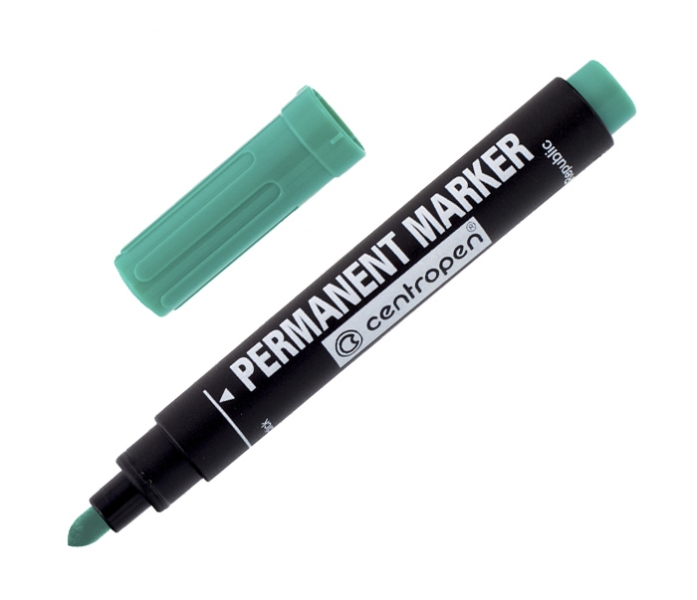 Permanentní popisovač, píše na většinu povrchů. Je vhodný k psaní na papír, pryž, plast, beton, kámen, dřevo, film, fólie, kov, sklo, porcelán. Permanentní, otěruvzdorný inkoust na alkoholové bázi, odolný vodě a povětrnostním vlivům, ventilační chránítko. Barva: zelená Šíře stopy: 2,5mm Válcový hrot