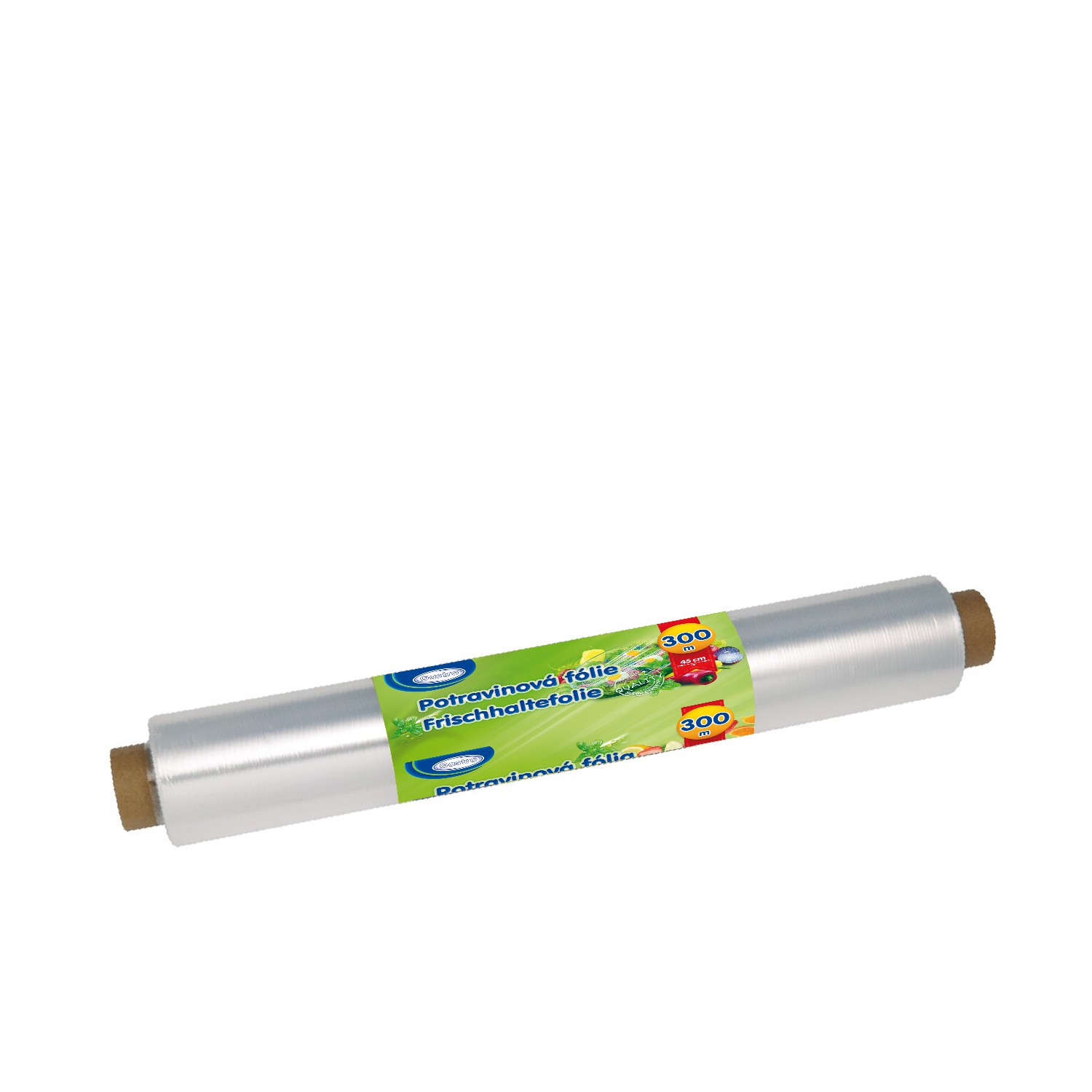 Fólie určená pro balení potravin. Šířka role je 45 cm. Návin 300 metrů. Síla 10 mikronů.