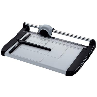 Pracovní stůl je vybaven natištěnými měřítky a posuvnou zarážkou souběžnou s přímkou řezu. Rotační nůž z nerezové tvrzené oceli. K dispozici je náhradní řezné kolečko, nebo celá řezná hlava., max. formát: A4, délka řezu (mm): 360, kapacita (listů 80 g/m2): 15, rozměr stolu (mm): 315 x 546, přítlak: automatický, hmotnost (kg): 3,4