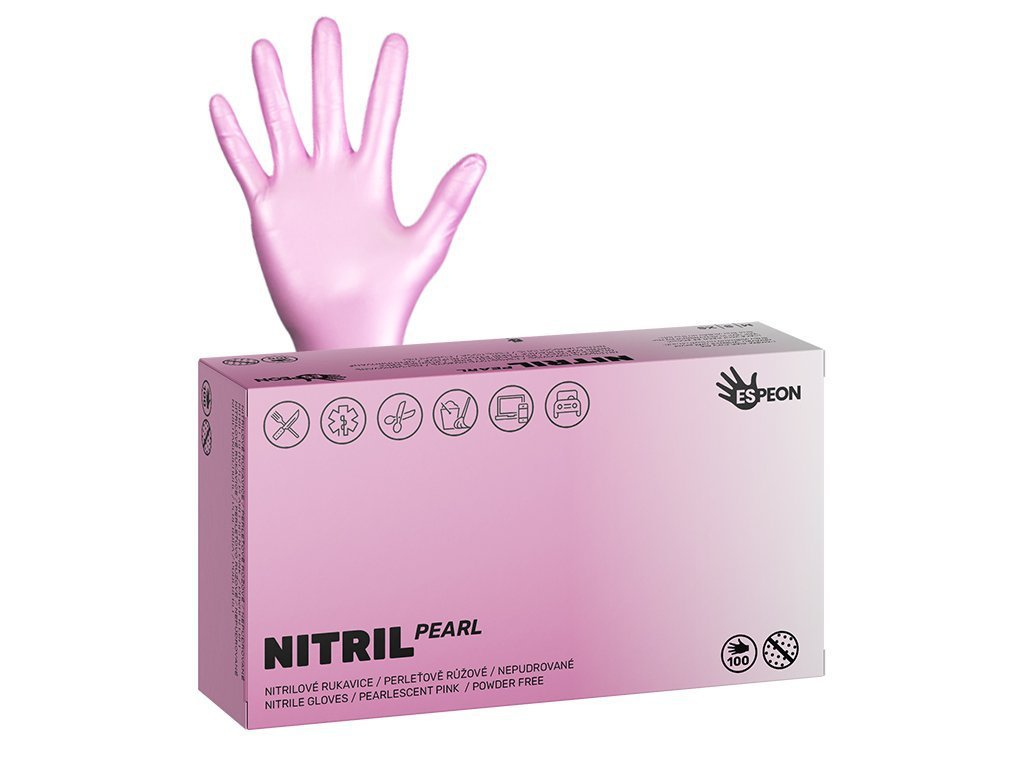 Rukavice nitrilové růžové-perleťové "M" nepudrované, 100ks