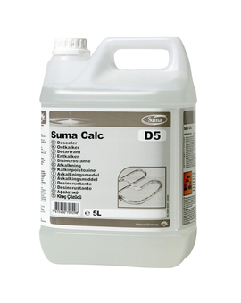 Suma Calc D5 je koncentrovaný kyselý čisticí prostředek, určený pro odstraňování úsad z kuchyňského náčiní a zařízení, boilerů, ohřívacích lázní, kávovarů, myček nádobí apod.